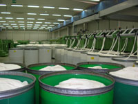利用专门的设备制造压缩空气对棉纤维进行清理、除尘,再将一捆捆不同质地的棉纤维混合在一起。